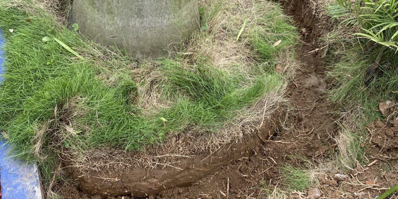 - Dùng xẻng đào theo hình tròn quanh gốc.